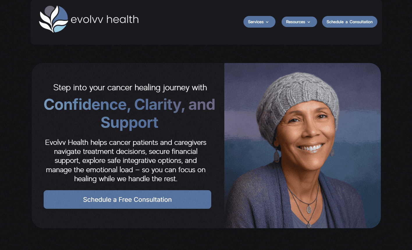 Whether you’re making treatment decisions, managing medical expenses, seeking safe integrative therapies, or supporting emotional well-being — Evolvv Health gives you the guidance, resources, and support to focus on what matters most: healing.